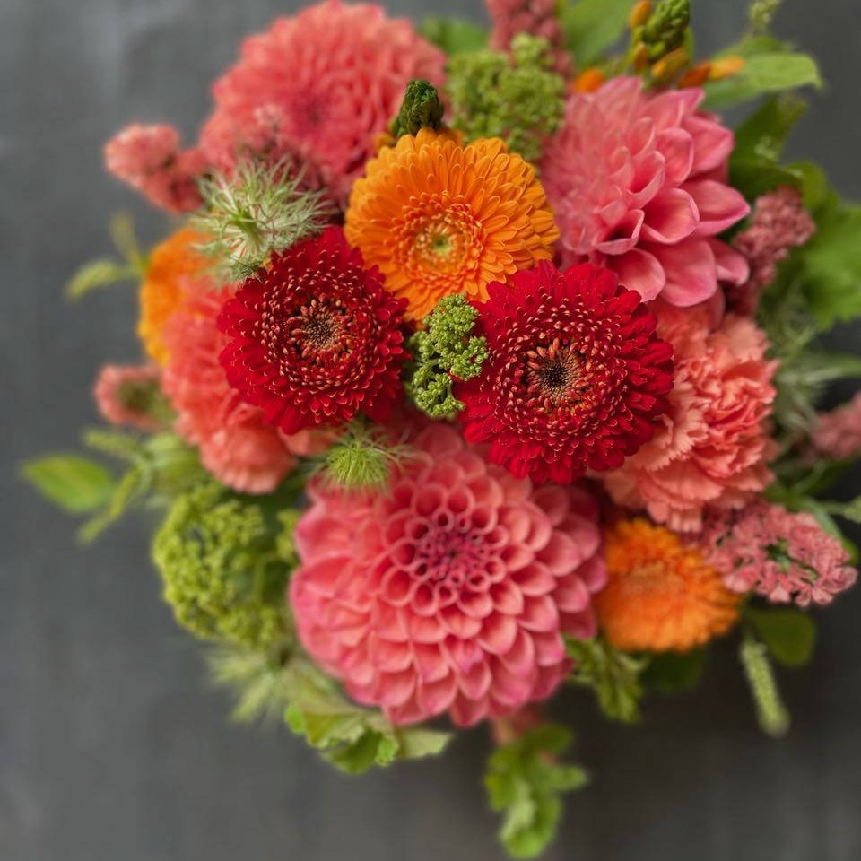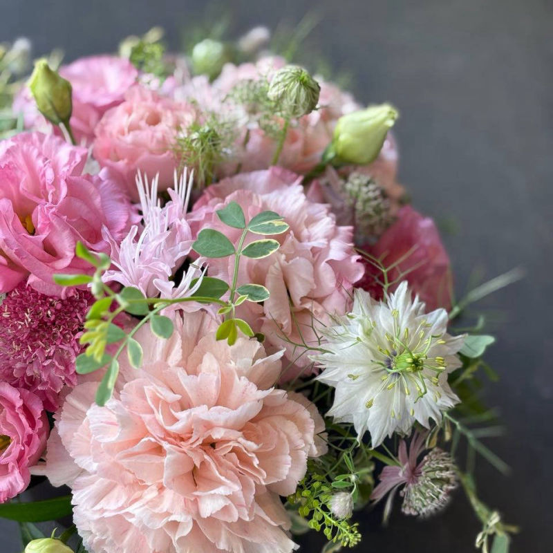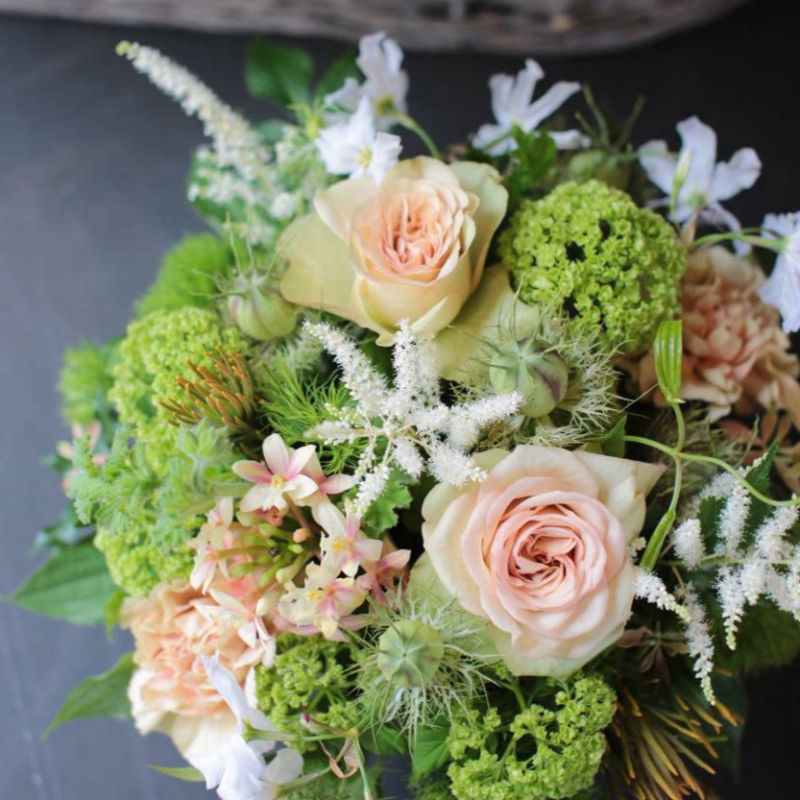 お花は季節のお任せでその日いちばん状態の良いものをひとつひとつ心を込めてご用意いたします